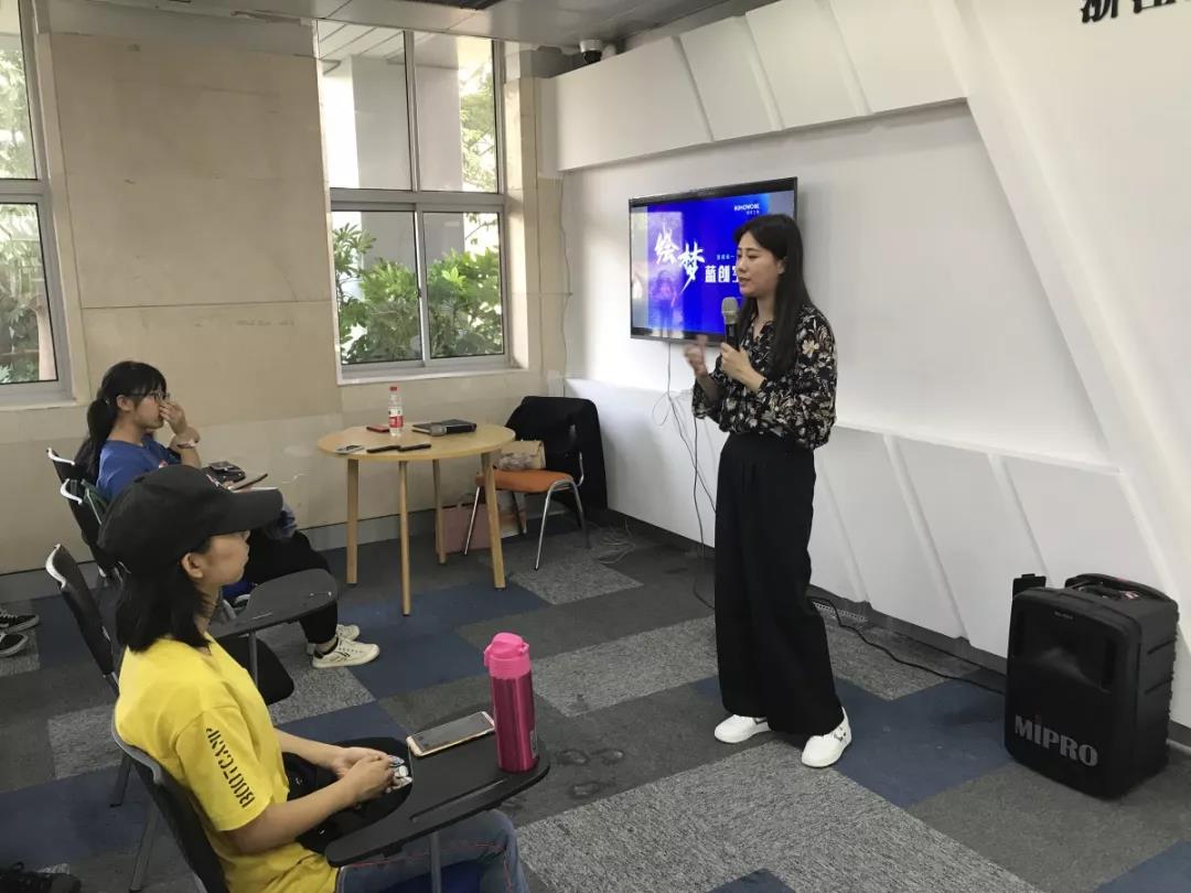 活动中,俞老师首先提到了项目团队的入驻流程,并详细地为前来参加宣讲的浙财同学们解释每个具体步骤,然后向大家展示蓝创空间的概况,绘梦蓝创空间位于文化中心一楼,由草莓视频