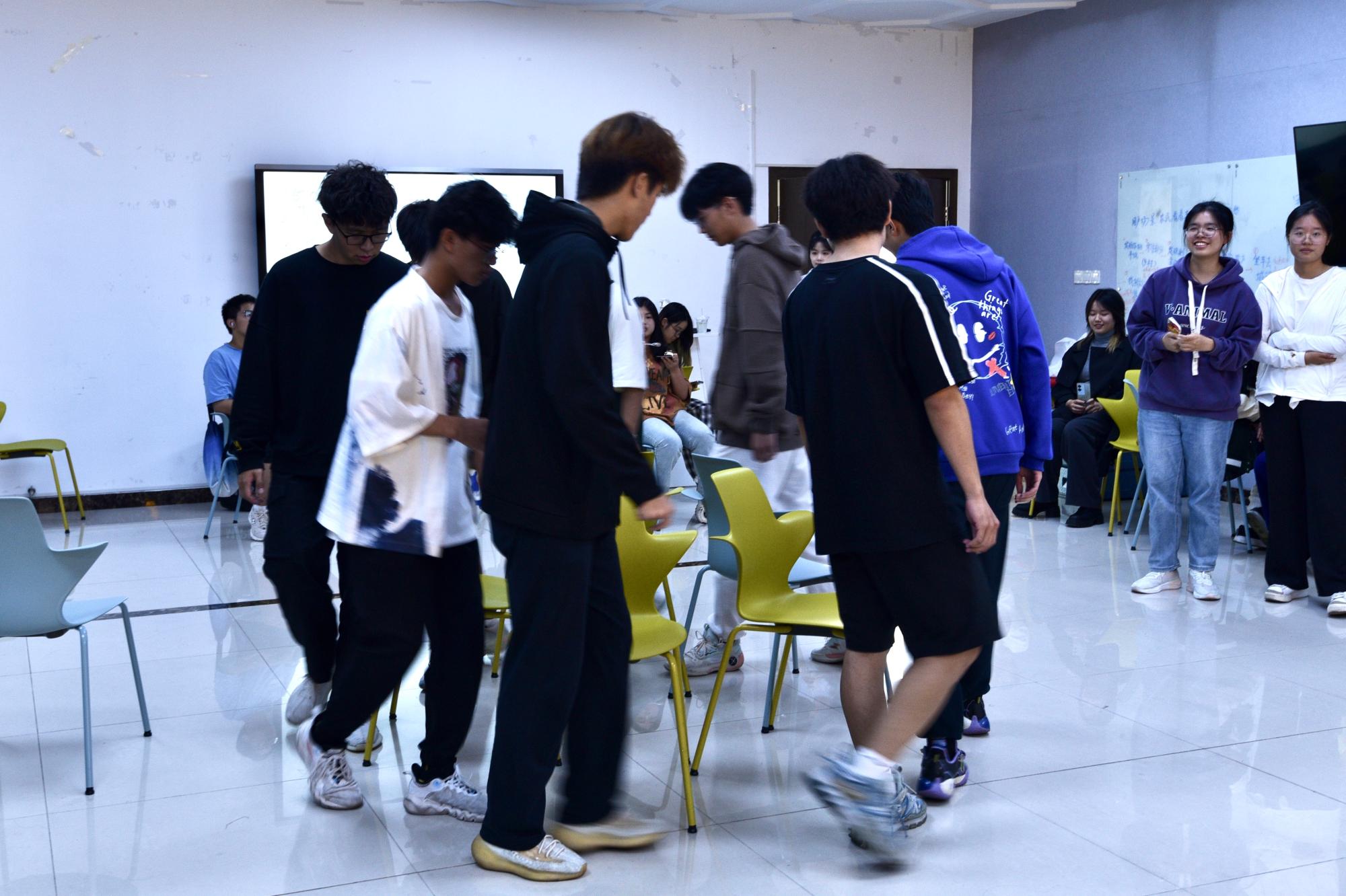 最后,会议进入到破冰环节。部门成员间展开了“我是谁”、“抢凳子”、“加字成句”的游戏之旅。破冰游戏不仅让同学们加深了对彼此的了解,更增强了不同部门成员之间的交流,有效提升了团队凝聚力,增加团队协作能力。