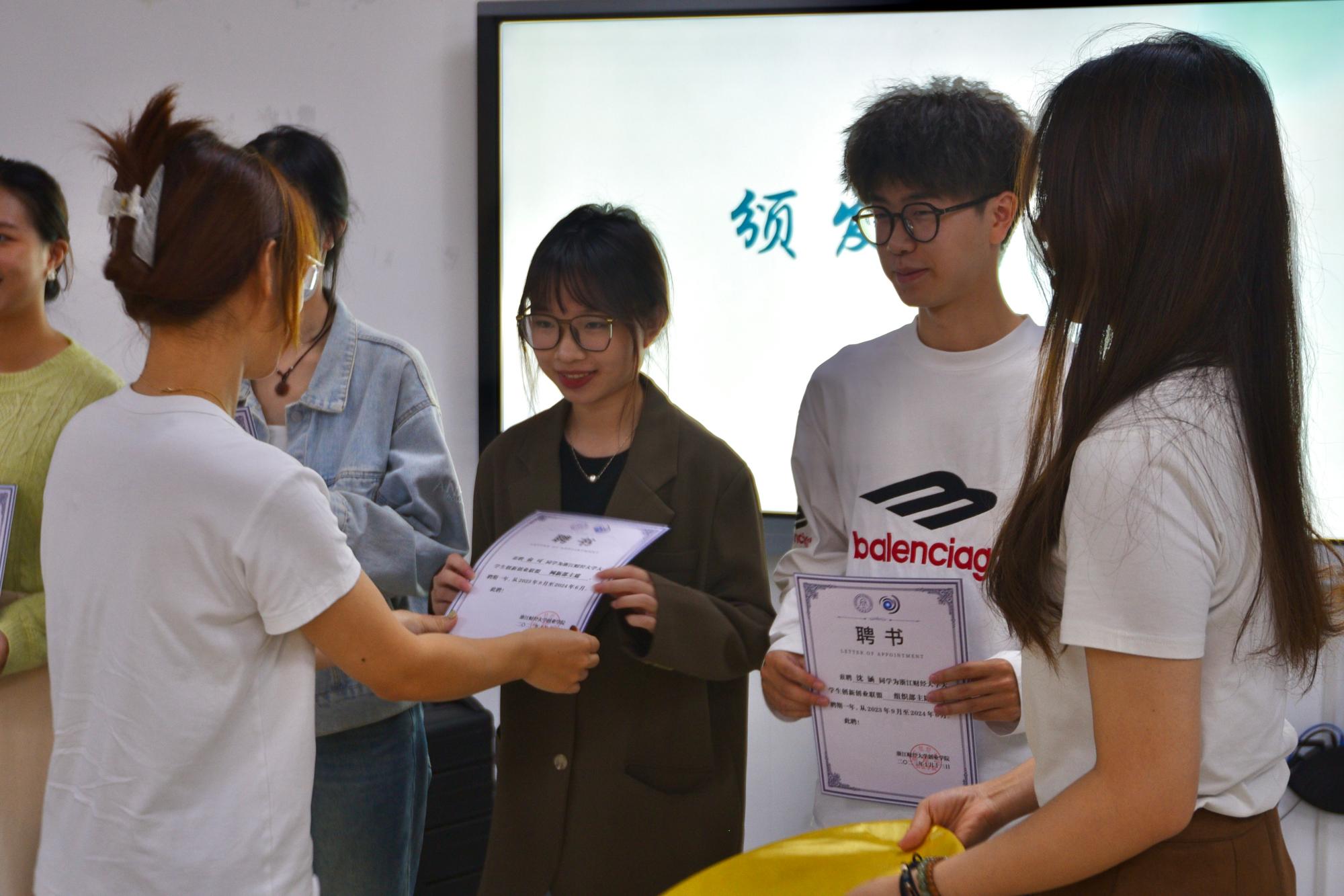郑洋为各部门主席颁发聘书。