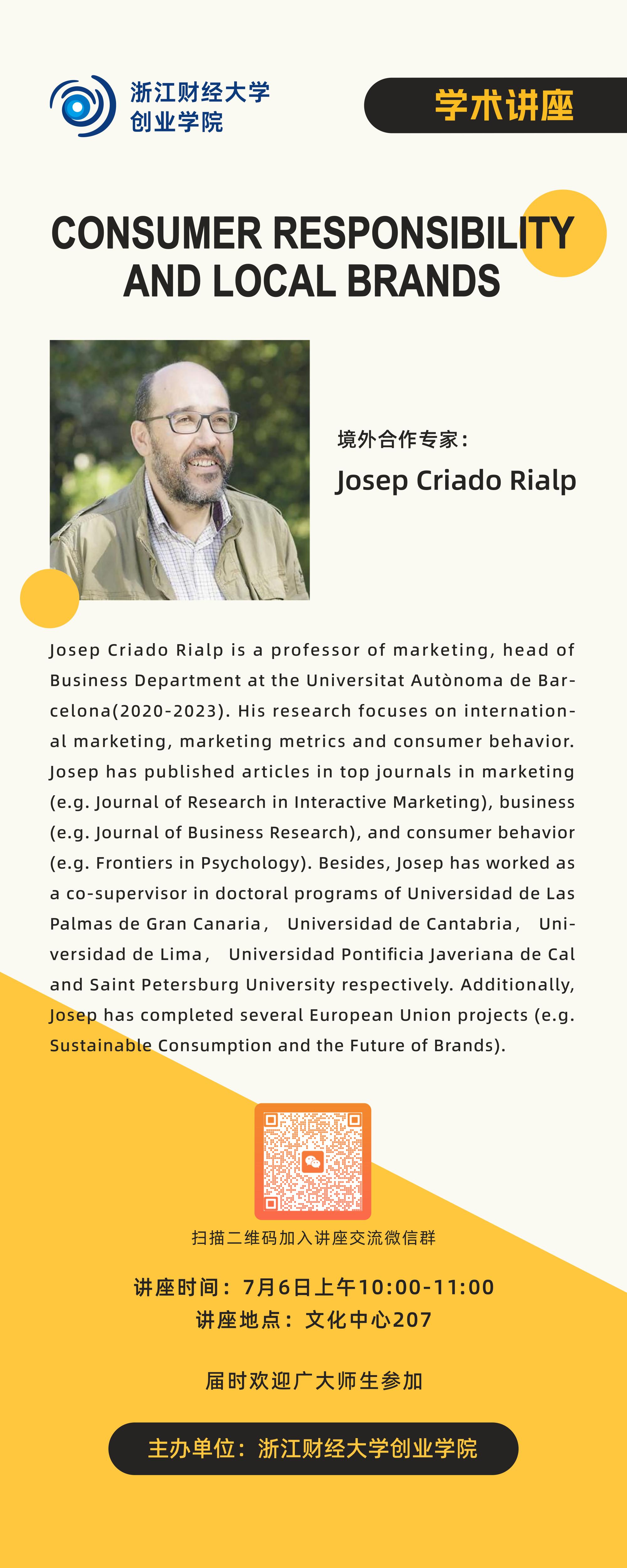 【讲座预告】Consumer Responsibility and Local Brands