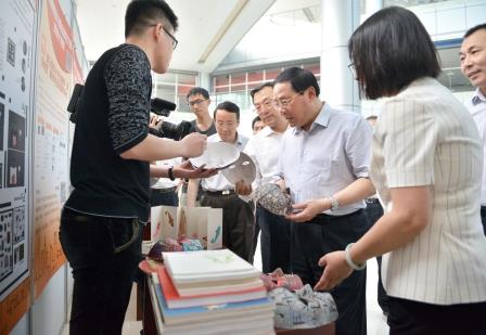 建设情况的汇报,对办学特色、课程建设等给予充分肯定。李强省长视察了学校创新创业大赛成果展,依次和蓝夹缬、三叶青、电子集成电路、在途旅游、Bridge、发呗、匠自在、颂文化等学生创业团队进行了交流。在考察“三又一木”设计团队时,对该团队跨界跨专业合作模式表示了欣赏,在考察“扫码出纸”团队时指出,通过商家买单的方式,同时达到节约用纸的想法值得推广和深化研究。在听取原校学生会主席吴金盛同学的介绍后,李强省长特别勉励学生干部要带头引领大学生创业。李强省长与各团队亲切交流,仔细询问了每个项目的市场前景,销售状况,学生专业组成等详细信息,给予各团队以高度评价,并笑称“浙财的学生什么都能干!”