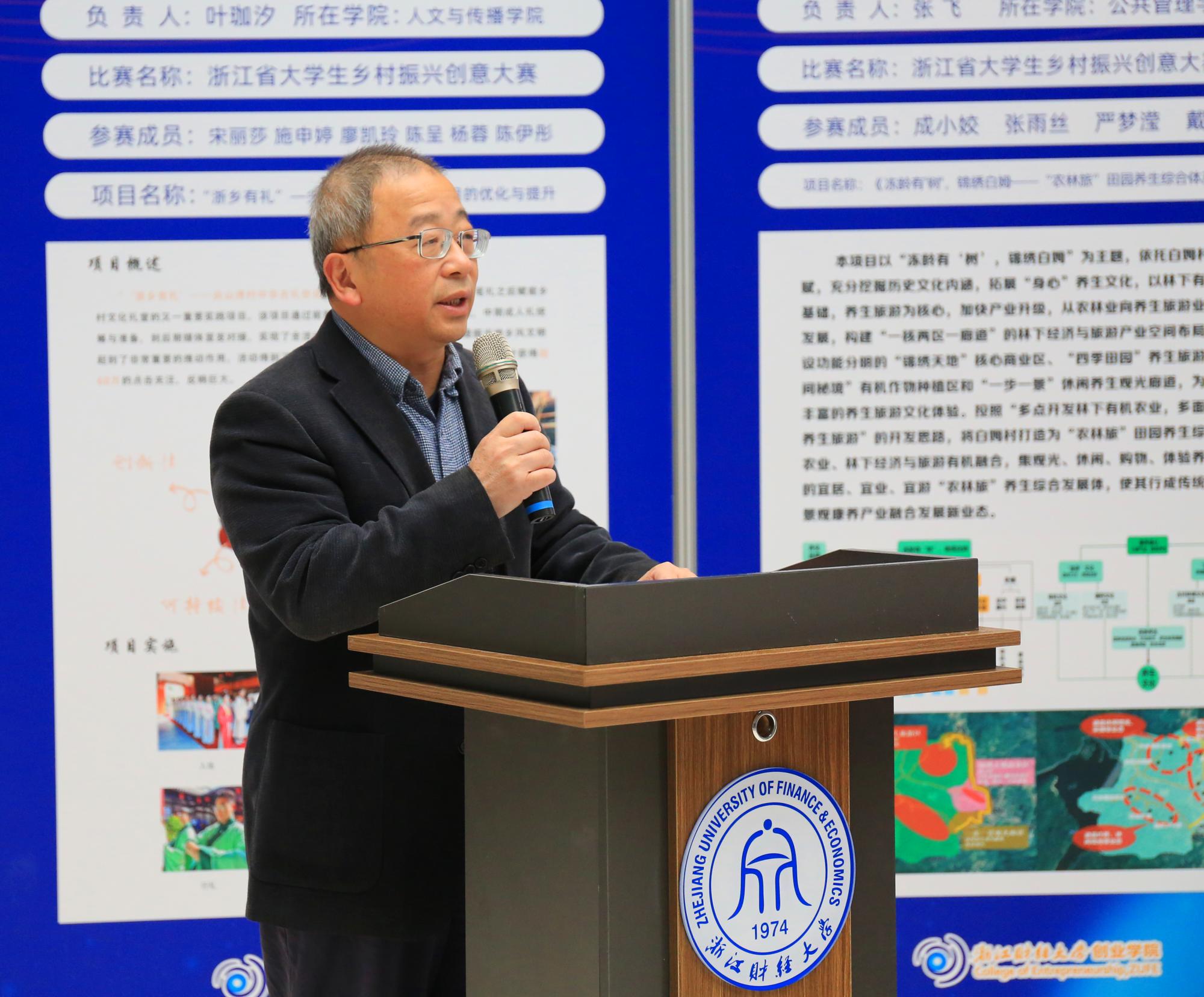 一直坚持建设“高水平的创新创业型财经大学”的奋斗目标,积极响应国务院“大众创业、万众创新”的号召,不断发挥财经特色优势,有效融合社会资源,推进政产学研合作,构建了“多维共生”的创新创业教育工作体系。同时,他强调,要把创新创业教育融入人才培养全过程,全体教职工要有强烈的主体责任;要把“创在财大”的品牌文化做得更好更强,让浙财文化永不落幕;要进一步激发全体师生“敢闯会创”的意识和精神,不断提升自身的创新创业能力;要鼓励广大同学们以此次双创教育活动月为契机,积极参与“双创嘉年华”、“蓝创市集”、“创新创业体验日”等教育活动,做到知行合一;要进一步花大力气办好2021年校创新创业与职业规划大赛。