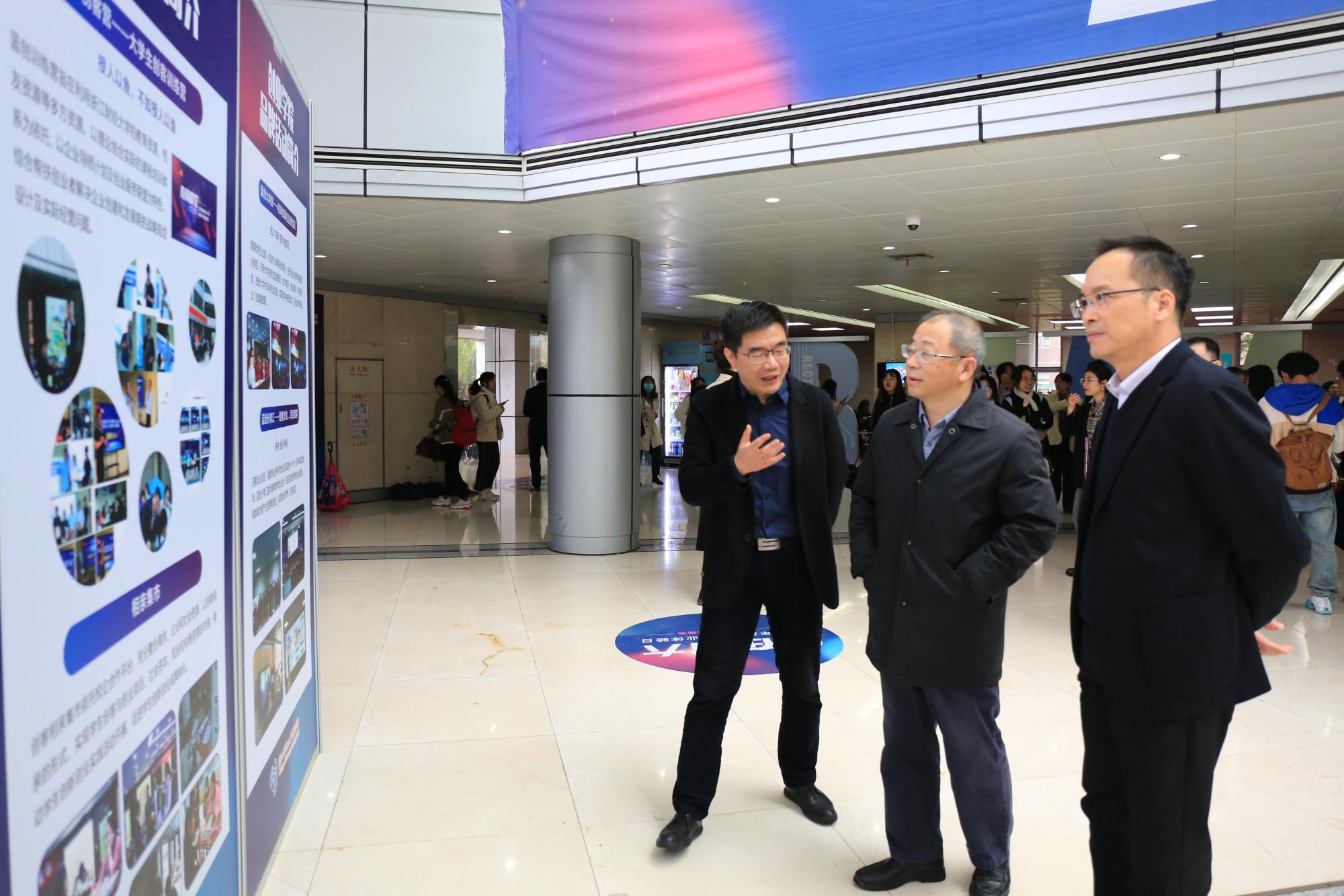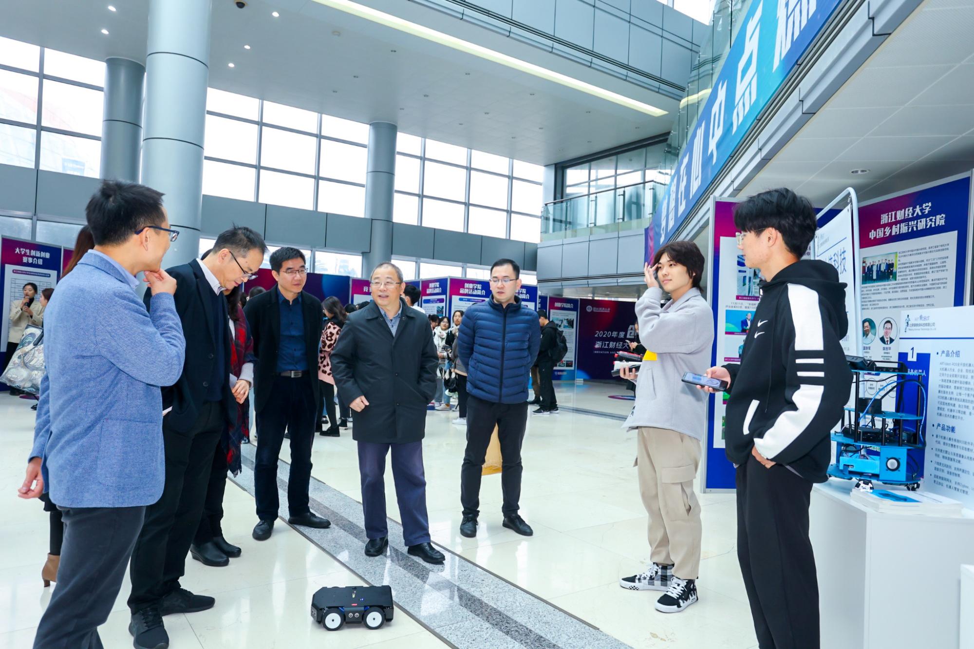 接着,与会领导、嘉宾、各学院师生一同参观了双创成果展、“钢铁侠”机器人展、双创嘉年华、蓝创市集、人工智能体验园等。