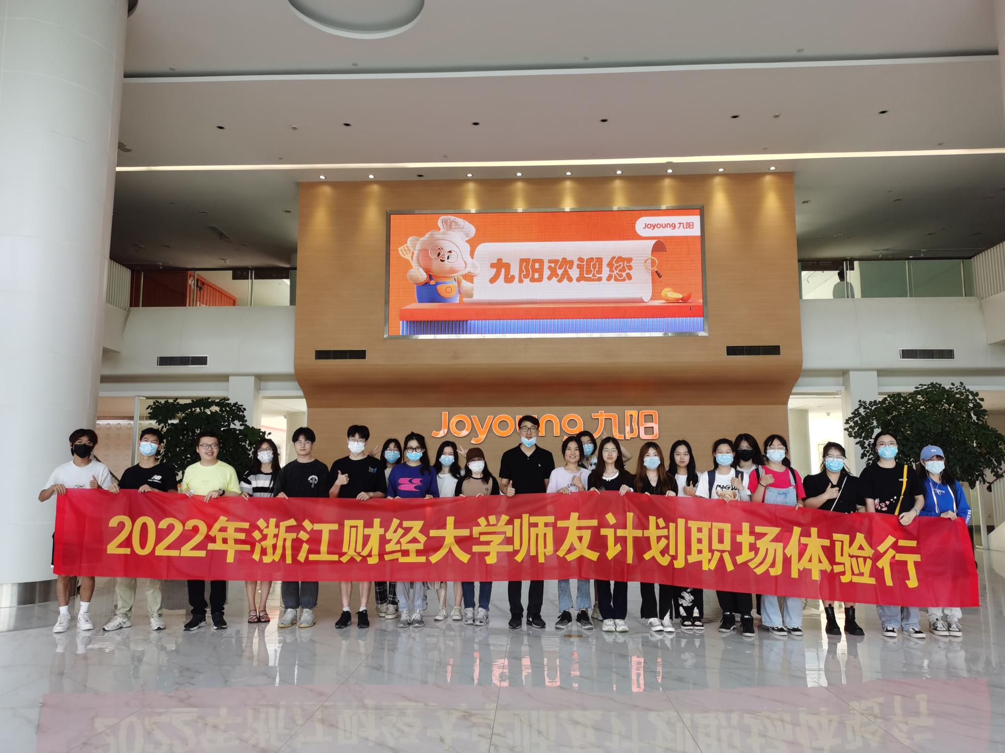 2022年师友计划职场体验行活动走进杭州下沙九阳创意工业园,来自双创课程学员参加了本次活动,进行了一场九阳品牌之道的探寻之旅。