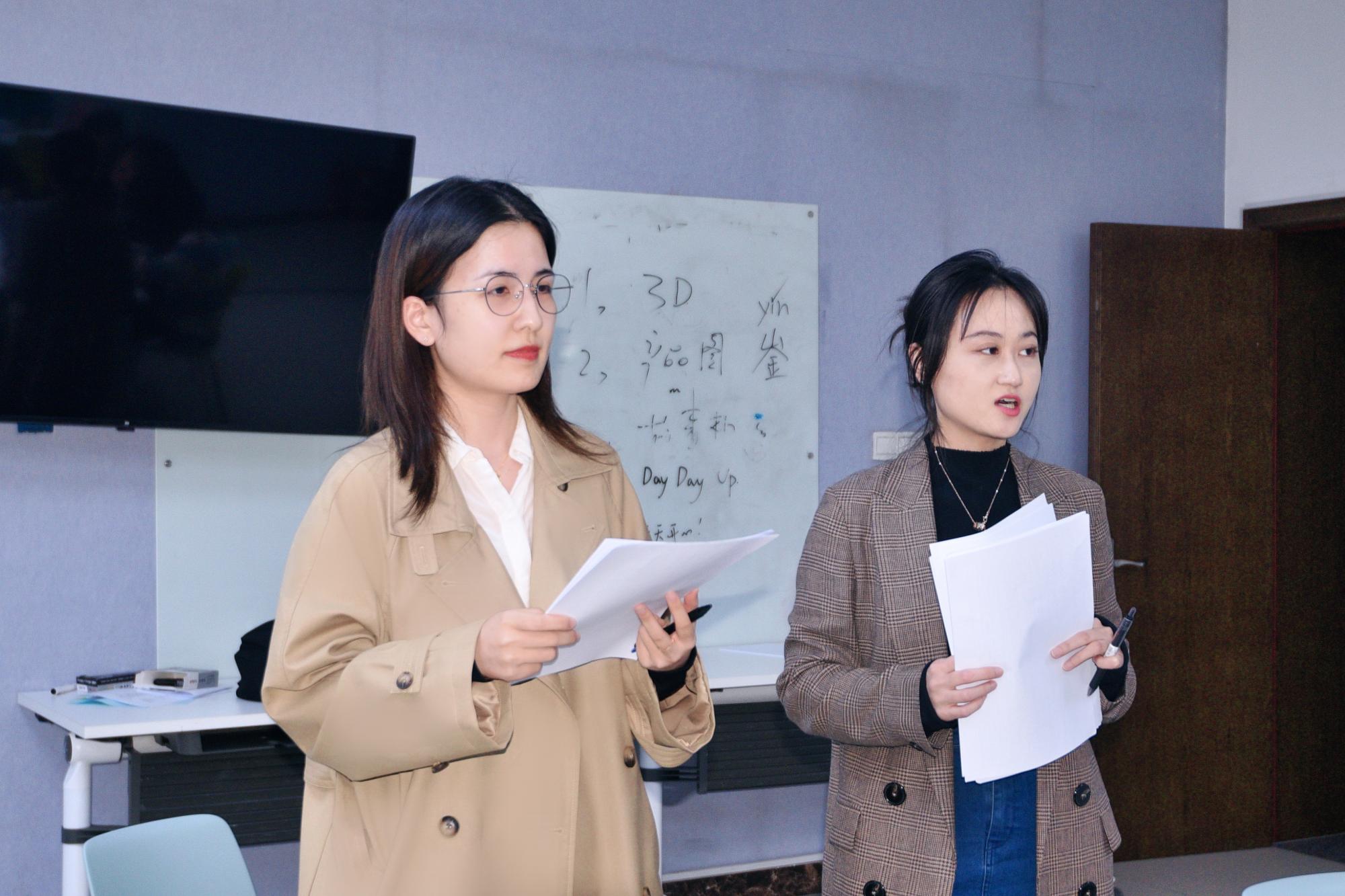 模拟面试环节由学生自我介绍、情景化无领导小组讨论、评委点评三个部分组成。面试过程中面试官从择业目的、职业意向、核心竞争力等方面对面试者进行模拟面试,并结合面试中出现的问题提出了指导性建议。