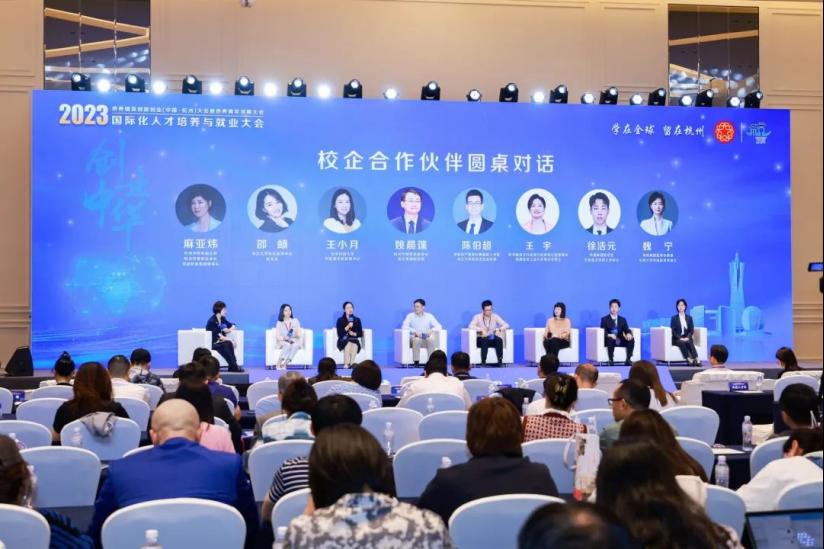 本次大会特设校企合作伙伴圆桌对话环节,杭州市侨联副主席、杭州市留联会会长、新通教育集团董事长麻亚炜作为圆桌主持人,同高校代表浙江大学就业指导中心副主任邵頔、华中科技大学外国语学院党委书记王小月,企业代表杭州市留联会副会长/传化集团副总裁姚晨蓬、杭州德海艾科能源科技有限公司董事长王宇、侨创科产董事长兼首席人才官陈伯超,留学生代表海亮集团董事长助理/伦敦大学学院硕士魏宁、荣盛集团管培生/伦敦国王学院毕业生徐浩元七位嘉宾展开探讨,围绕“国际化人才标准及核心素养”、“国际化人才的探索和实践”、“校企合作助力国际化人才培养”等议题深入交流,为进一步推动国际化人才培养和校企合作助力大学生成长规划与就业选择以及留学人才就业前景提供了有益的参考和启示。