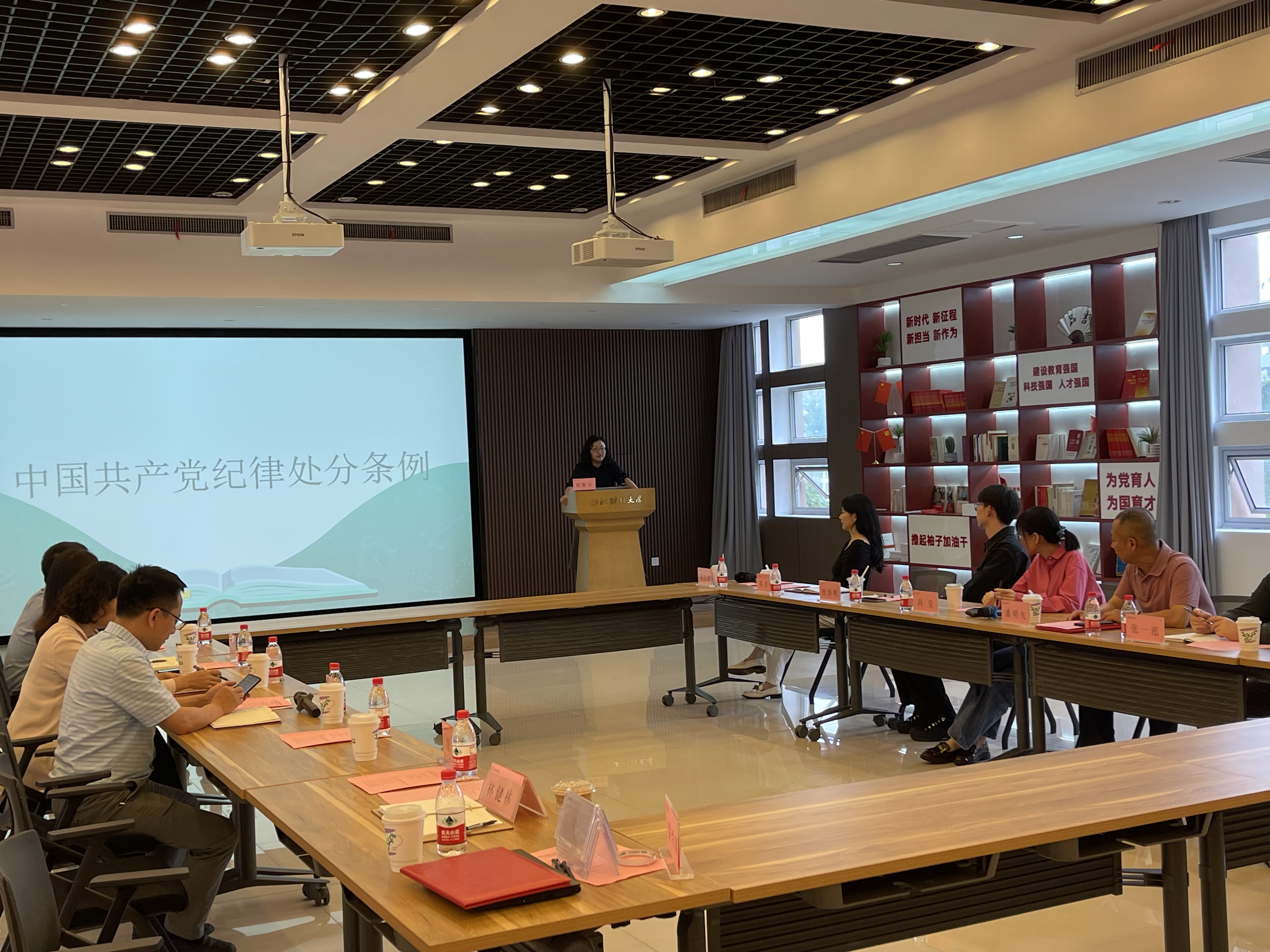 马克思主义学院副院长邢雁欣作专题学习讲座。邢院长详细解读了《中国共产党纪律处分条例》历史沿革,强调了党纪的重要性。学习结束后,双方支部党员一起参观了学校党风廉政展。