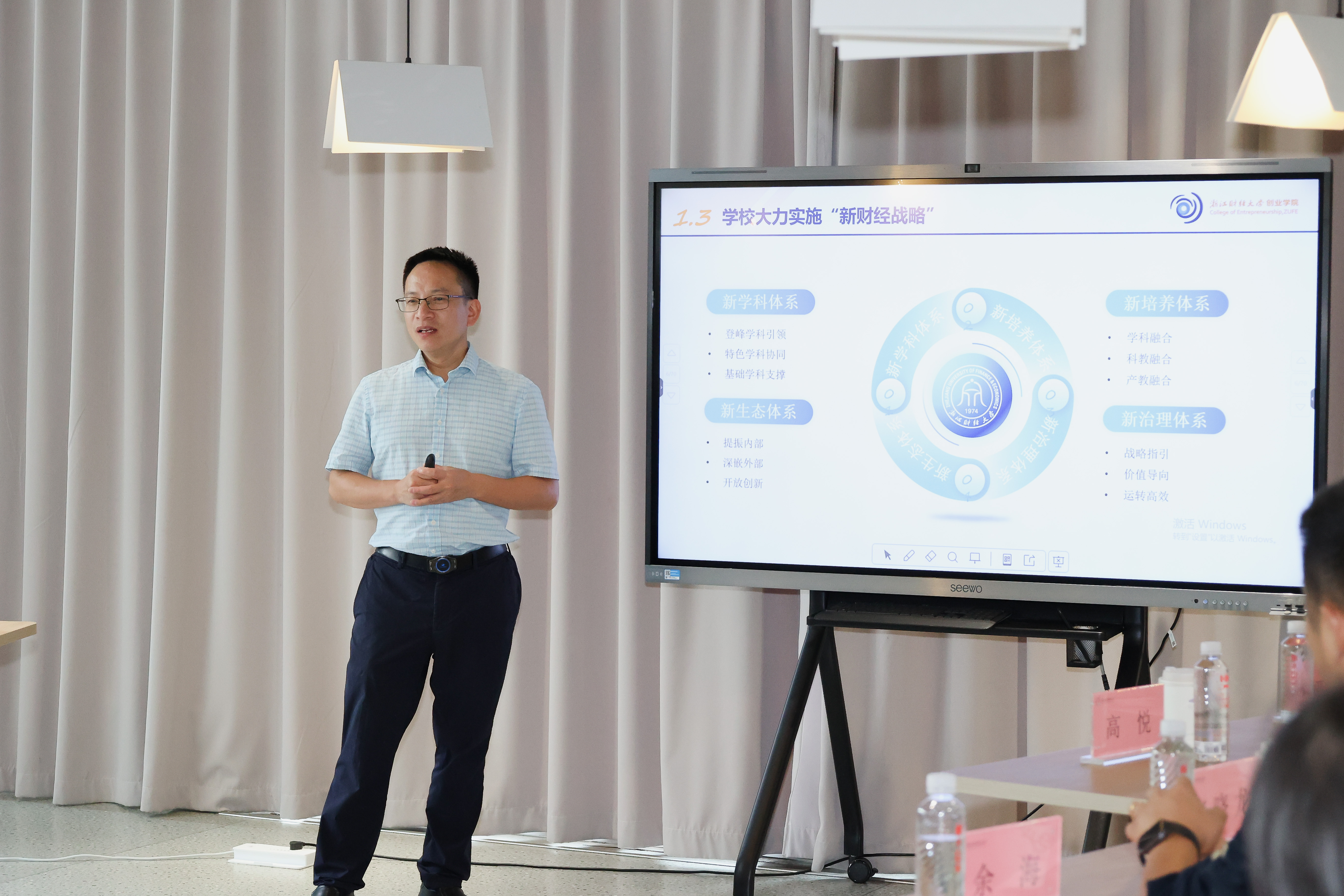 创新创业教育的发展历程、“新财经”人才培养理念、教育体系、特色项目及取得的显著成效。他表示学校落实立德树人根本任务,坚持“宽口径、厚基础、强应用、个性化”的高素质人才培养路径,努力培养具备MAQ特质的“浙财金生”。