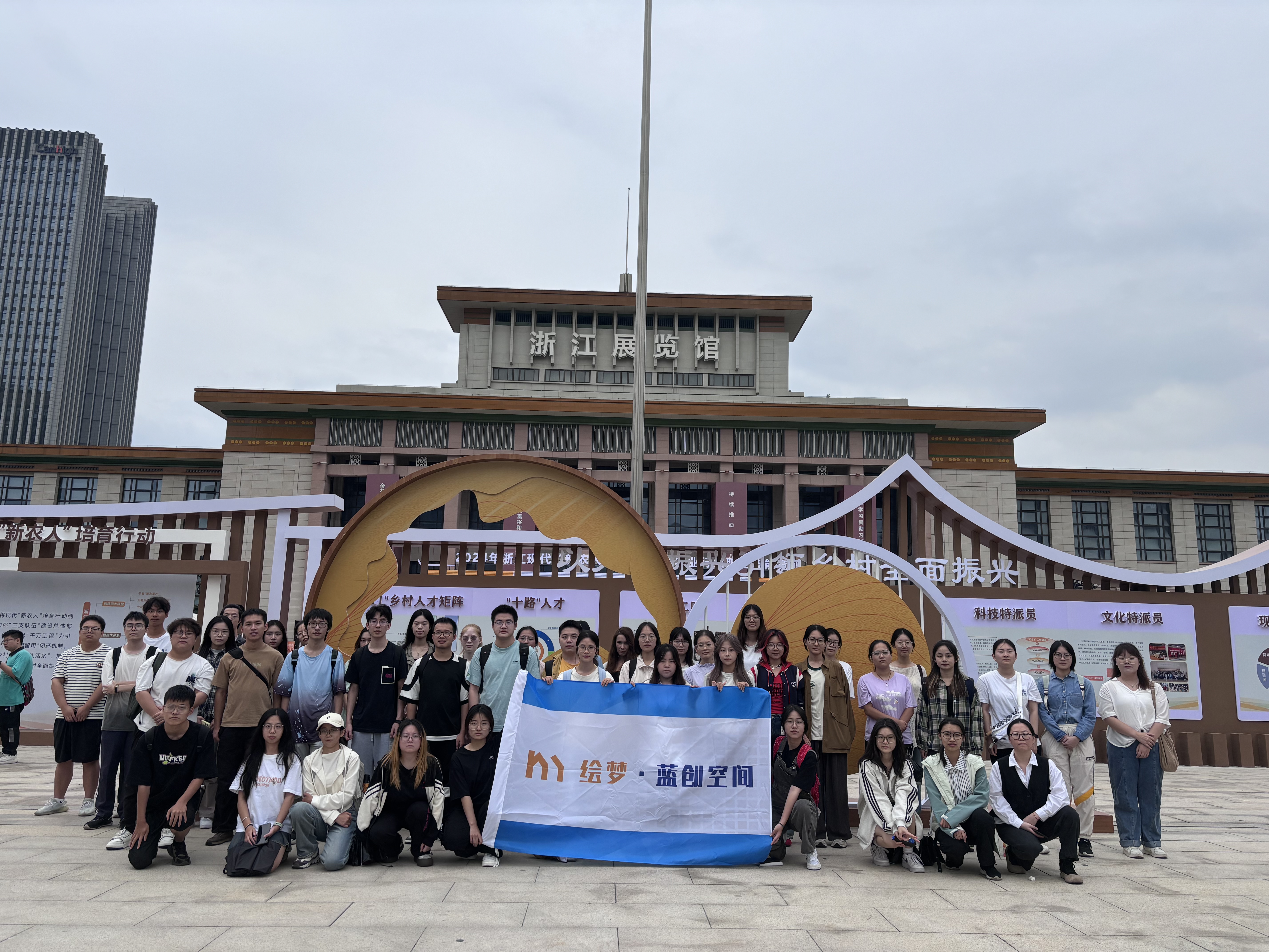 9月23日下午,受浙江省乡村振兴促进中心的邀请,草莓视频 绘梦蓝创空间50名同学来到浙江省展览馆南广场,参与观摩浙江现代“新农人”技能比武(技艺展示)活动。同学们在现场观看了新农人技能展示表演,并参观了乡村振兴成果展,深刻学习领会全面促进乡村振兴的要领和意义。