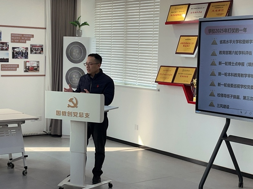 3月7日上午,国教创党总支在唯实楼519会议室召开党风廉政专题党课暨2025年第一次全体教职工大会。会议由党总支书记黄金娟主持,全体教职工参加。会议以“筑牢廉洁防线 护航教育发展”为主题,结合党风廉政建设与年度重点工作部署,进一步凝聚共识、明确方向。