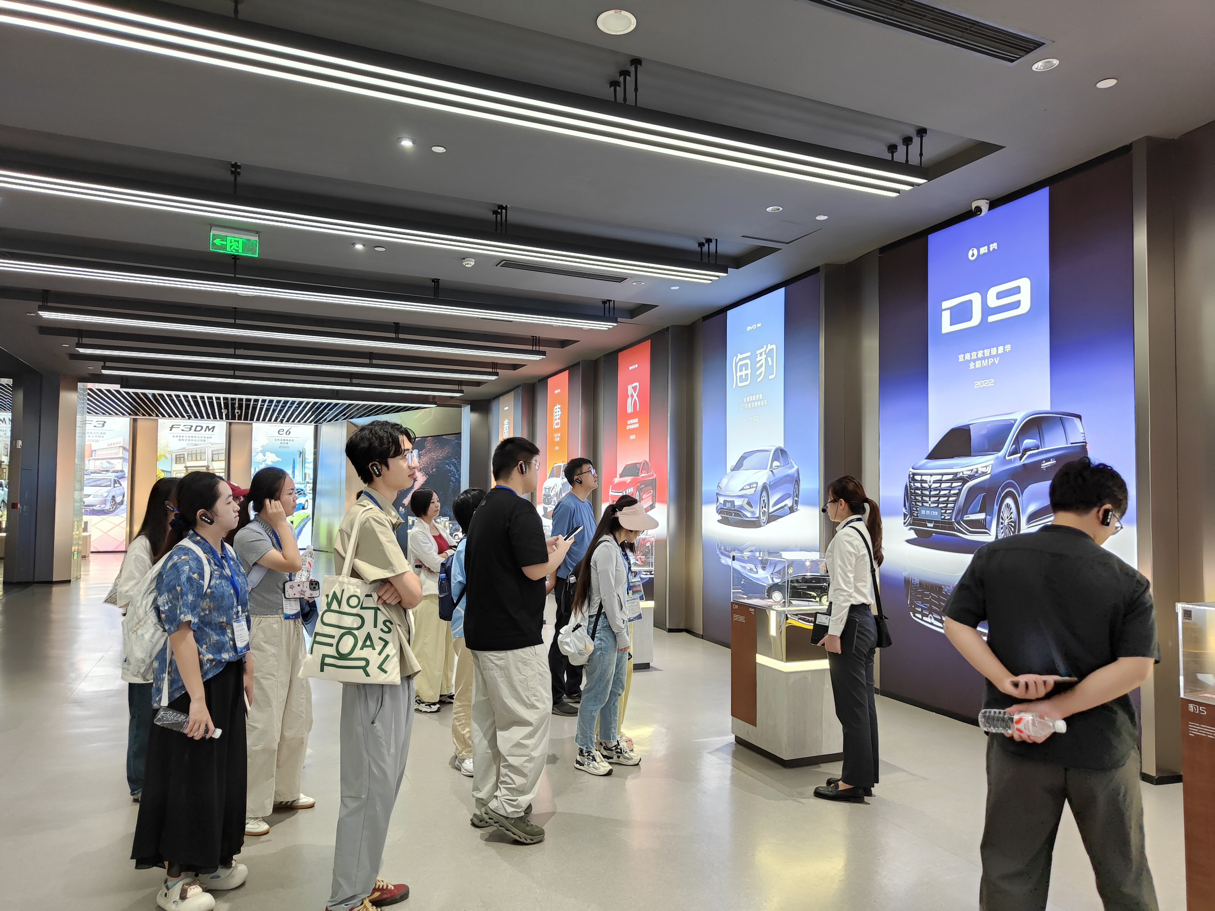 在比亚迪,电池安全是新能源汽车的核心竞争力。电池制造车间里,讲解员向大家详细介绍了比亚迪刀片电池的研发背景、技术优势与生产流程,从锂矿原料筛选到电芯封装检测,每一道工序都设置多重质量管控关卡,确保电池安全性与稳定性。随后,学员们体验了河南省首条云巴线路,感受比亚迪在轨道交通领域的技术延伸;在 “迪空间”,大家还参与了未来动力实验室探索、汽车创想工坊五感设计实验,亲手完成简易汽车模型创意改装。