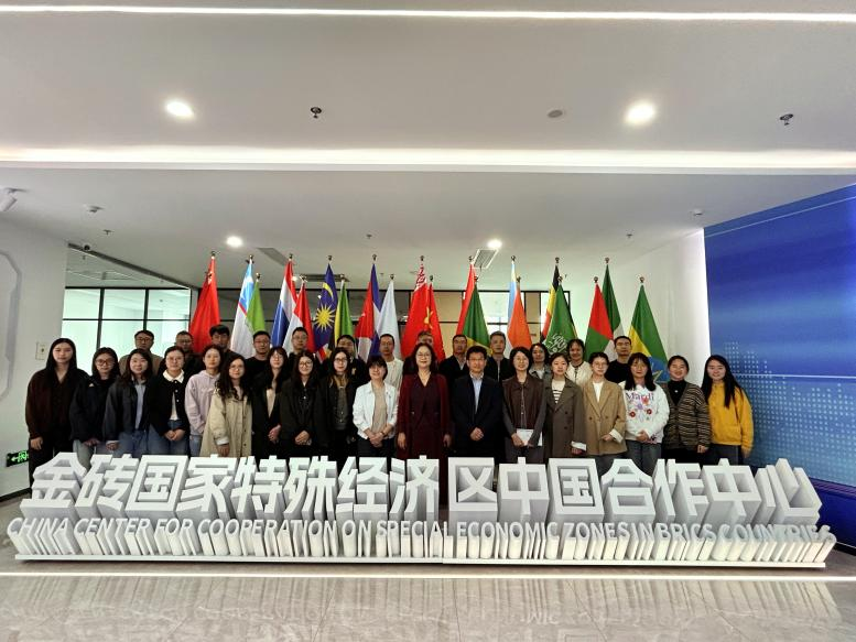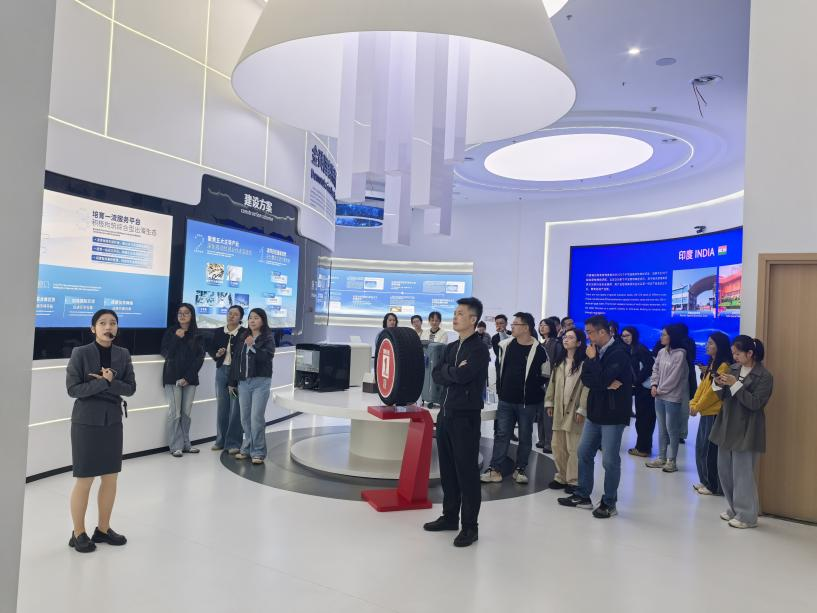 研学活动首站来到金砖国家特殊经济区中国合作中心。作为金砖国家经贸合作与产业对接的重要载体,中心工作人员以 “共商、共建、共享” 为核心,通过专题讲解、多媒体演示与实物展陈相结合的方式,向教职工们系统介绍了金砖国家特殊经济区的建设背景、发展定位与合作成果。在互动交流环节,工作人员重点解读了钱塘区依托该中心在跨境贸易、技术创新、人才交流等领域的特色实践,展示了区域内企业与金砖国家在新能源、高端制造、数字经济等产业的合作案例。