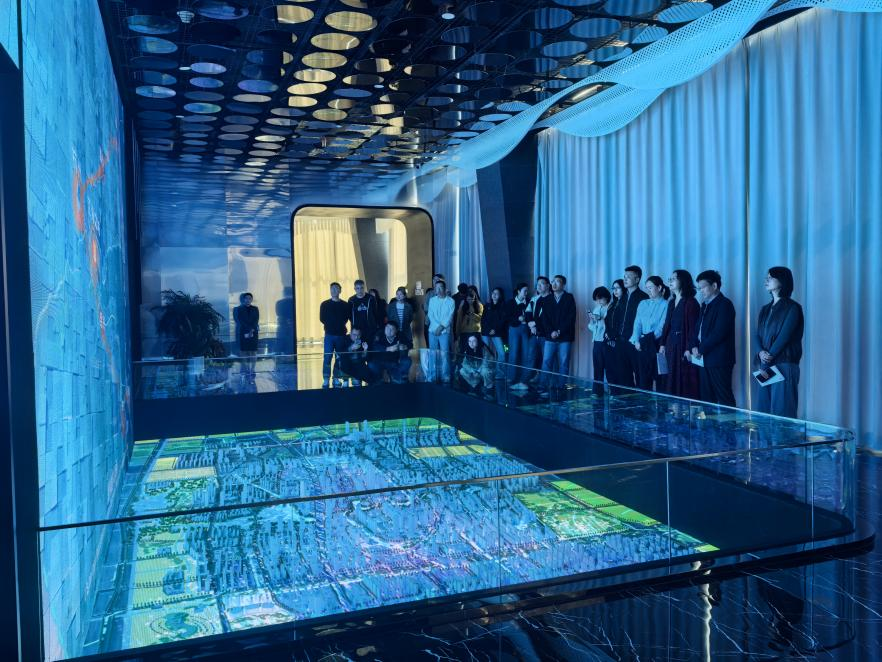 随后,全体教职工前往江海之城城市展厅,开启对钱塘区城市发展的深度探索。展厅以 “江海潮起・未来之城” 为主题,通过动态沙盘、3D 影片、互动屏幕等现代化展陈手段,全方位呈现了江海之城的空间规划、产业布局、生态建设与民生配套。在讲解员的引导下,教职工们依次参观了 “城市溯源”“战略蓝图”“产业引擎”“生态宜居” 四大展区,详细了解了江海之城作为钱塘区 “城市新中心、产业新高地、生态新标杆” 的发展定位,以及在智能制造、生物医药、数字贸易等战略性新兴产业的布局规划。