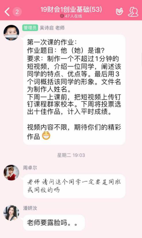 一是要合理选择合适的、并且自己能够熟练掌握的平台;自己一个多月跟其他小伙伴们试验下来,觉得钉钉不太会卡,并且很人性化,上课所需要的签到、课程任务提醒、上课信息统计、作业布置等都有,今天问学生,线上课程到今天,哪个平台体验最好,学生几乎异口同声的说,钉钉。