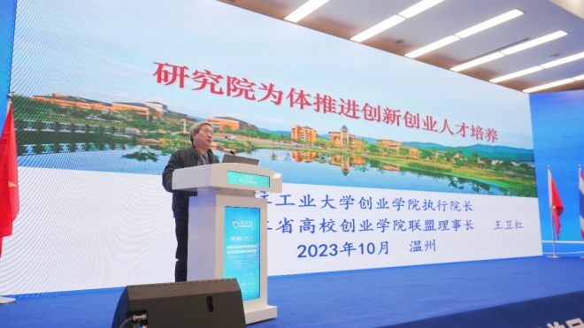 院长、教授王卫红作题为《研究院为体推进创新创业人才培养》的主旨报告,分享了政府+高校+企业的浙工大研究院模式如何助力创新创业型人才的培养。