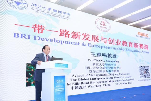 浙江大学资深教授、浙江大学全球创业研究中心主任王重鸣围绕《“一带一路”新发展与创业教育新赛道》话题作精彩演讲。