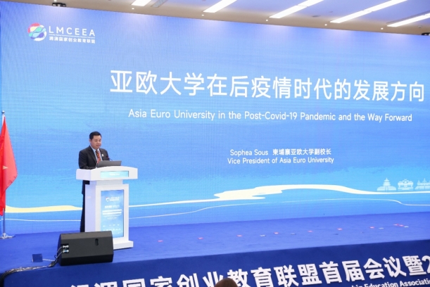 柬埔寨亚欧大学副校长Sophea Sous回顾了疫情期间学校发挥高教资源优势,加强与外界联络,众志成城,共渡难关。