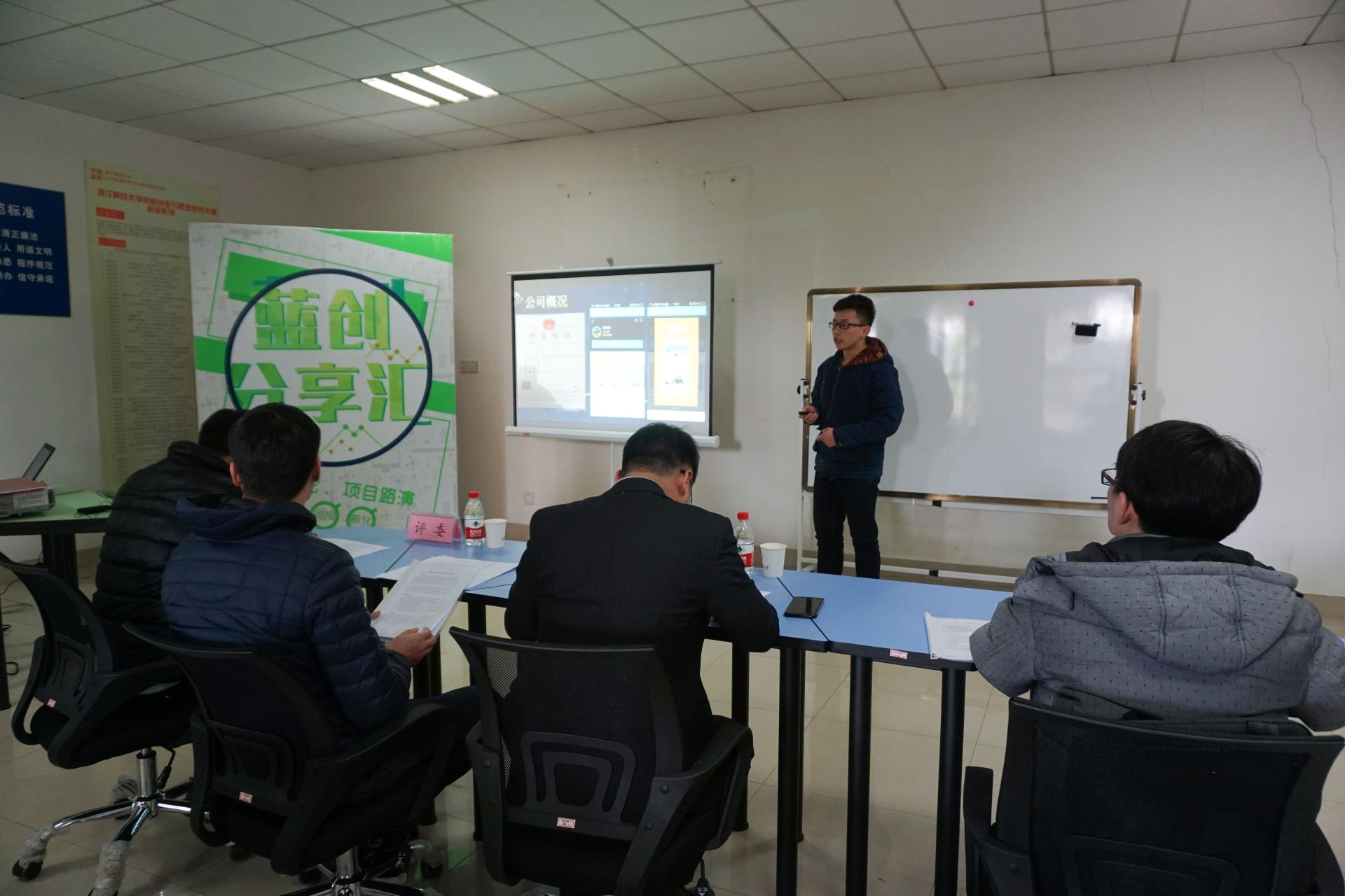参加本次路演的项目有“海宁创客网络科技有限公司”、“V益社区服务发展平台”、“私房蛋糕——小魔女”和“杭州泰克思税务咨询有限责任公司”。各个项目团队以PPT展示的形式对项目进行了全面阐述,介绍了项目的构思、创新点等。评委们则在市场需求、竞争分析、经营方案、财务分析、管理团队等方面对项目进行了评价和针对性提问。答辩在选手和评委的热烈讨论中落下帷幕。