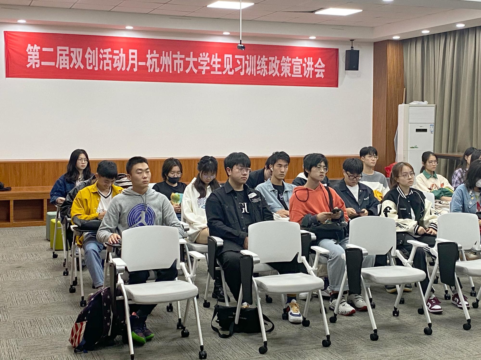 最后,赵女士解答了同学们提出的问题,解决同学们对政策的疑惑。至此,杭州市大学生见习训练政策宣讲会圆满结束。