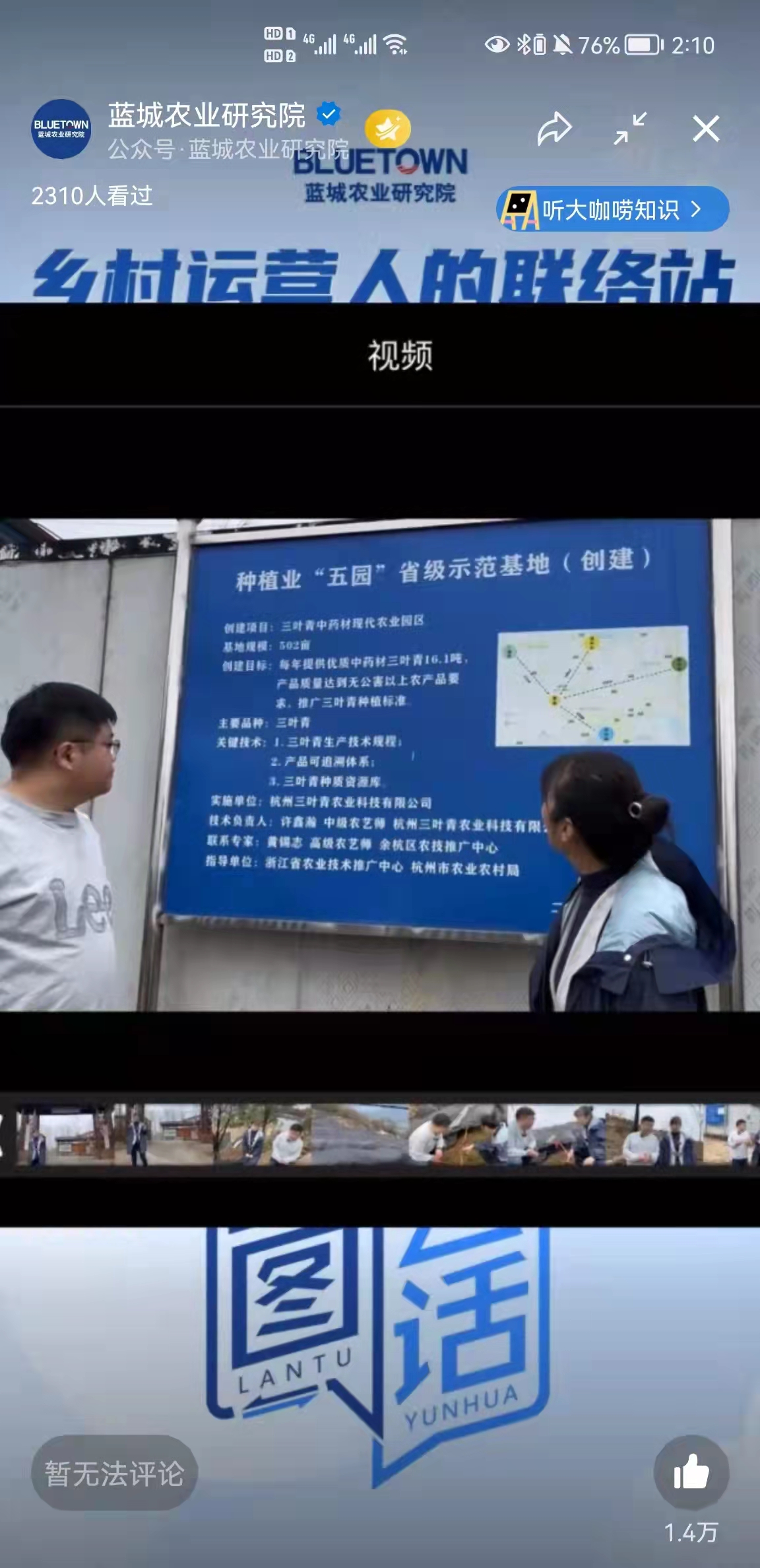 特别支持的蓝图云话第三期—走进三叶青中药现代农业园区顺利举行。本期直播的主题是走进三叶青中药现代农业园区,分享年轻人返乡入乡的小指南,由杭州三叶青农业科技有限公司董事长许鑫瀚为我们进行分享。