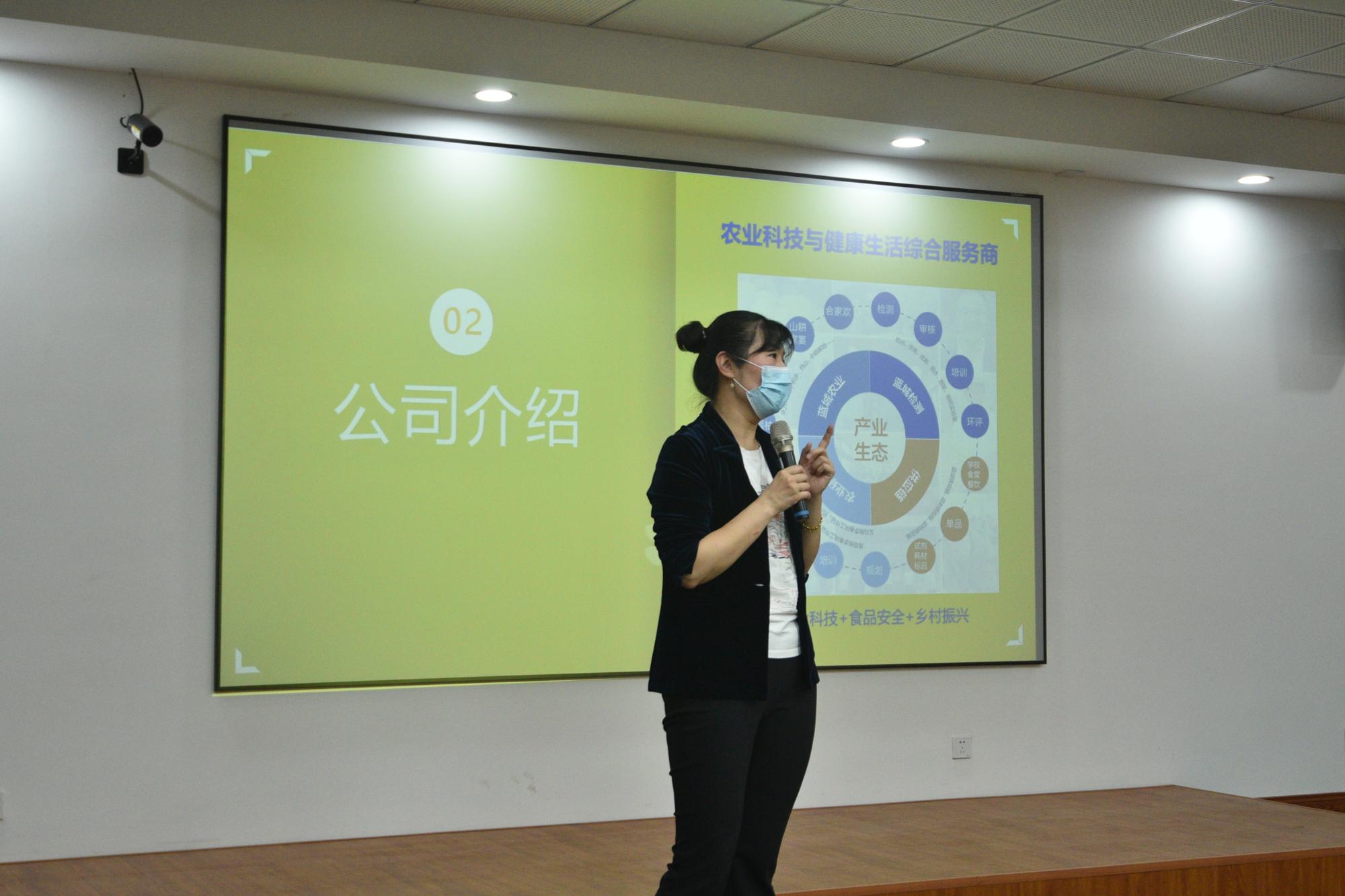 接着,向珊老师介绍了蓝城农业的概况并进一步介绍了本次创业见习所涉及到的两个项目,包括项目的缘起、项目前期的经历与目前所取得的成果。向老师详细的讲解加深了同学们对创业项目的认识。