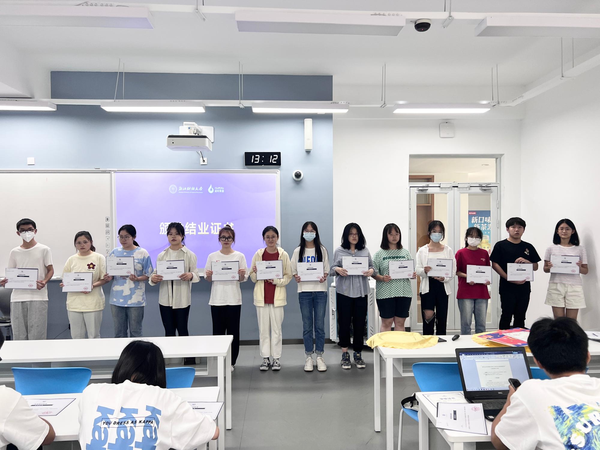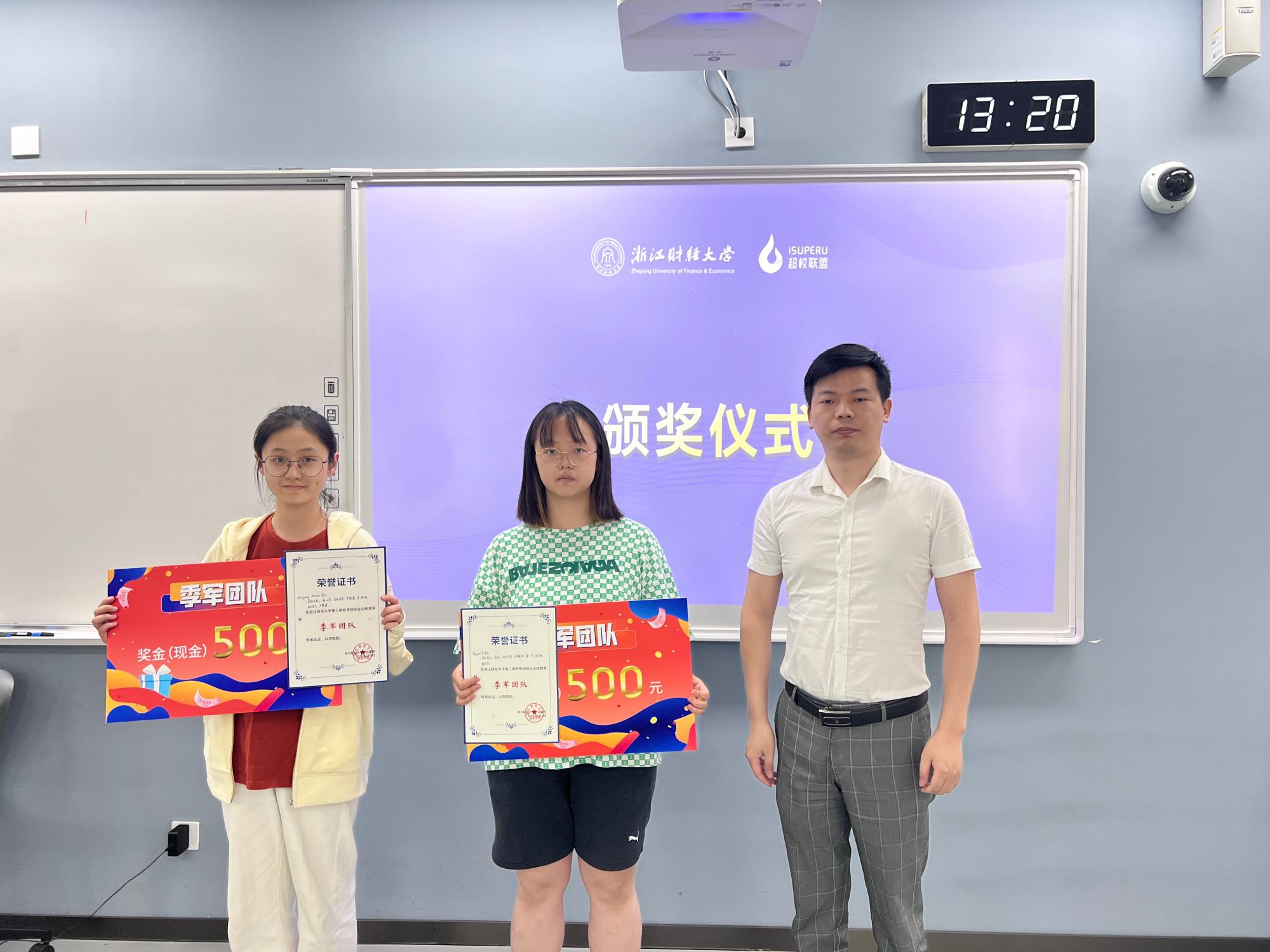 接下来,郑洋老师为本期训练营学员颁发结业证书。随后,颜鑫宇和吴佳洁同学作为优秀学员分享了自己在本次训练营中的收获与感受。颜鑫宇同学分享了他的团队开通线下自助售卖站点的创新方式,提到训练营给他收获最大的地方就是做事一定要有行动力。他在训练营中不仅学习了电商运营的相关知识,还获得了面对困难的勇气,做出改变的魄力和说做就做的能力。吴佳洁同学分享了她在本次训练营活动中收获到的从市场营销和电子商务的角度看未来职业发展的视角,并对本次活动中耐心指导的老师表达了衷心的感谢。