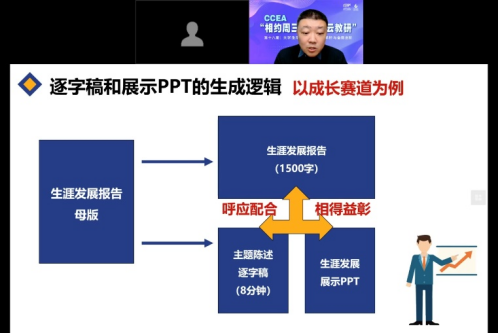 最后,刘海滨结合以往参赛作品案例分析优点和不足,并提供了生涯发展报告的一些结构框架。此外,他在互动区线上交流,有效地解答了师生在备赛过程中的困惑。