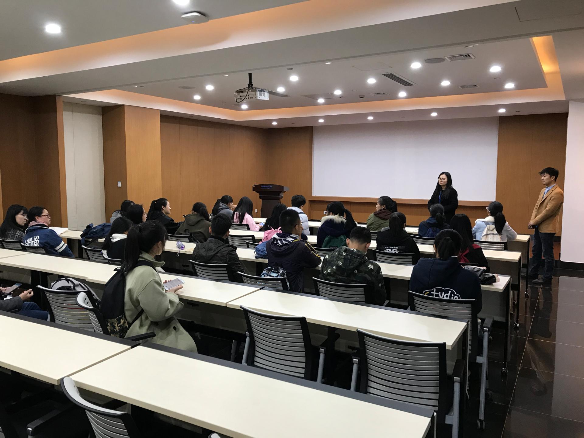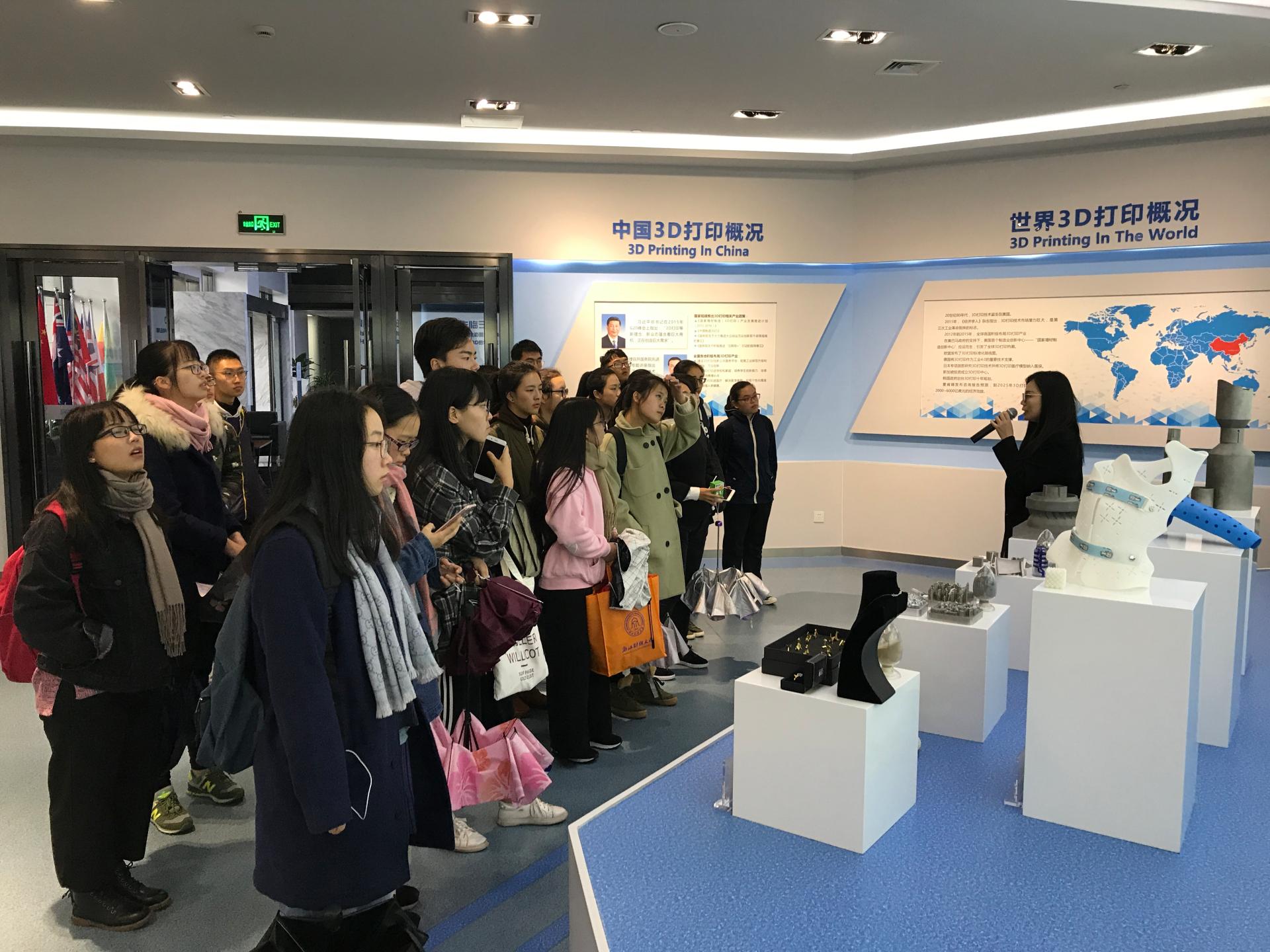 在先临三维科技展示大厅,项目发展部黄宝婵经理向学员们介绍了公司整体发展情况、3D数字化和3D打印技术研发与应用水平、3D打印在制造业、生物科技、国防军工、航空航天等领域应用现状,以及通过“3D打印+互联网”,让个性化产品走进亿万家庭的前景。随后,黄经理还带学员们参观了3D打印操作车间,近距离接触了3D打印制造过程,对于3D打印有了一个更为直观了解。最后,在交流环节,黄经理耐心解答了同学们关心的职员平均薪资及用人单位招聘要求,公司对不同岗位的能力需求等问题。