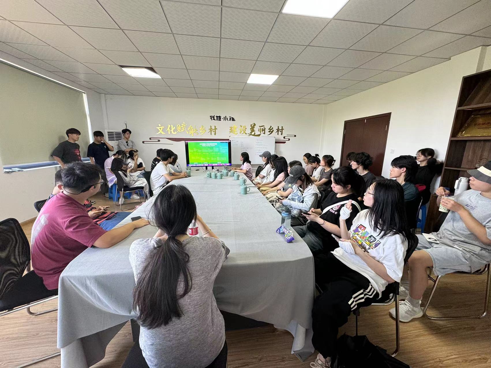 讲座结束后,钱塘小雅经理高伟伟带领同学们来到了钱塘小雅文旅中心,进行深度参观体验。钱塘小雅搭建乡村经济共富平台,形成以影视拍摄、创意农业、研学教育、城市微度假多元叠加的业态布局,提供高度城市化下不一样的田园文化体验。